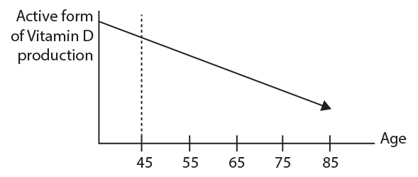 Studies have shown that after 45 years, the body’s ability to produce the active form of Vitamin D from sunlight or foods decreases. Vitamin D level in the body may be low as a result.